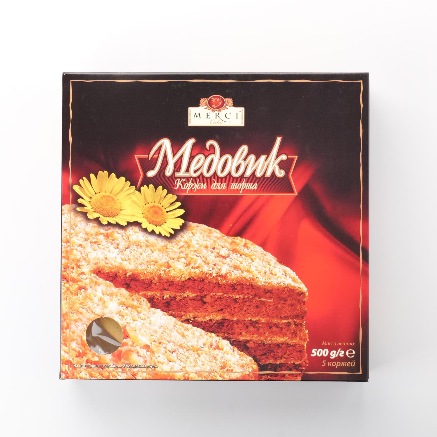 Real time saver "in 30 minutes". Ready-made cake layers "Medovik" from the brand "MERCI" just need to be steamed, smeared with your favorite cream, and allowed to stand for a while. One package contains 5 flavored cake layers .