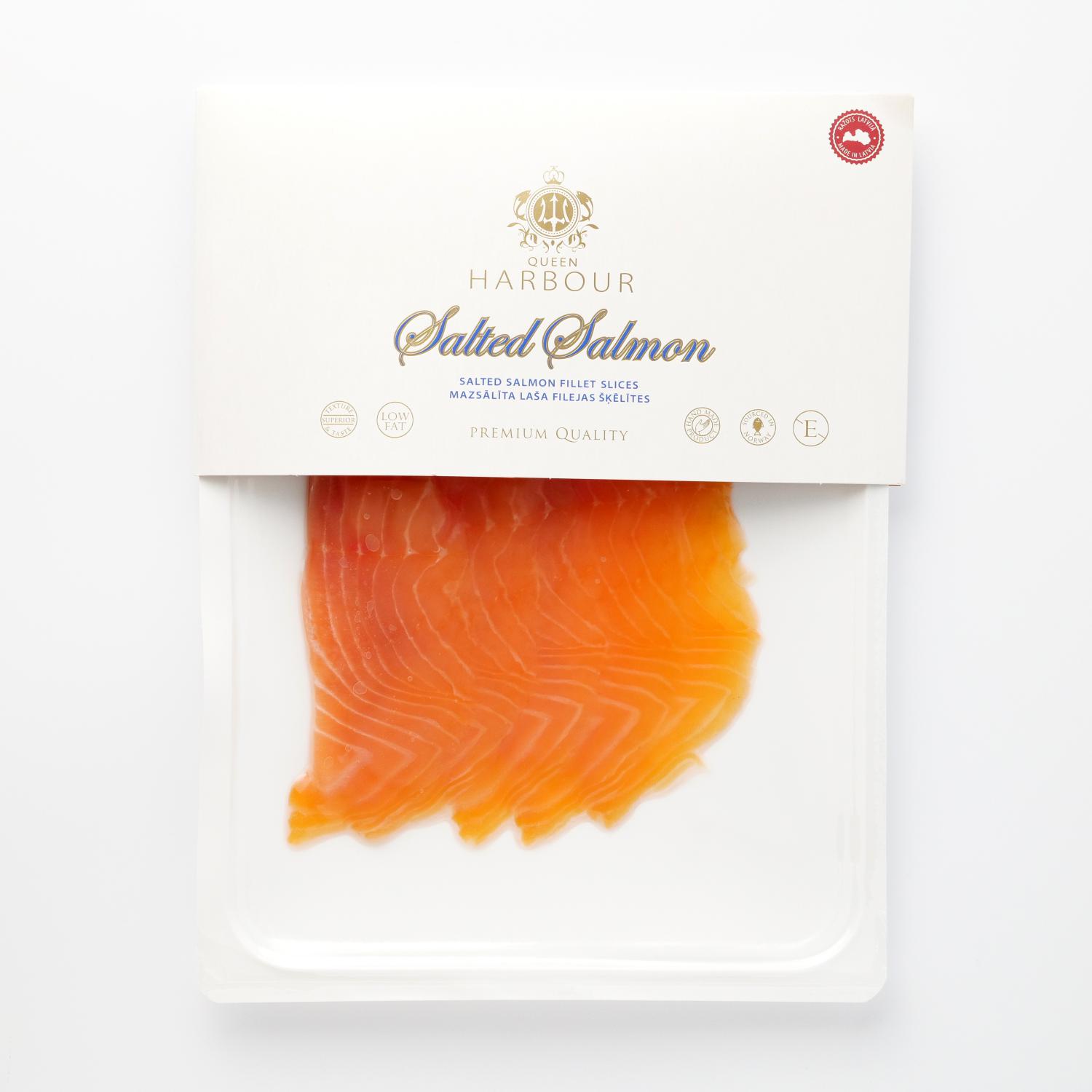 Feliile de somon ușor sărat al producătorului „Queen Harbour” sunt făcute din somon de Atlantic de calitate superioară. Peștele are un gust delicat, care se datorează faptului că acesta se realizează prin sărare manuală.