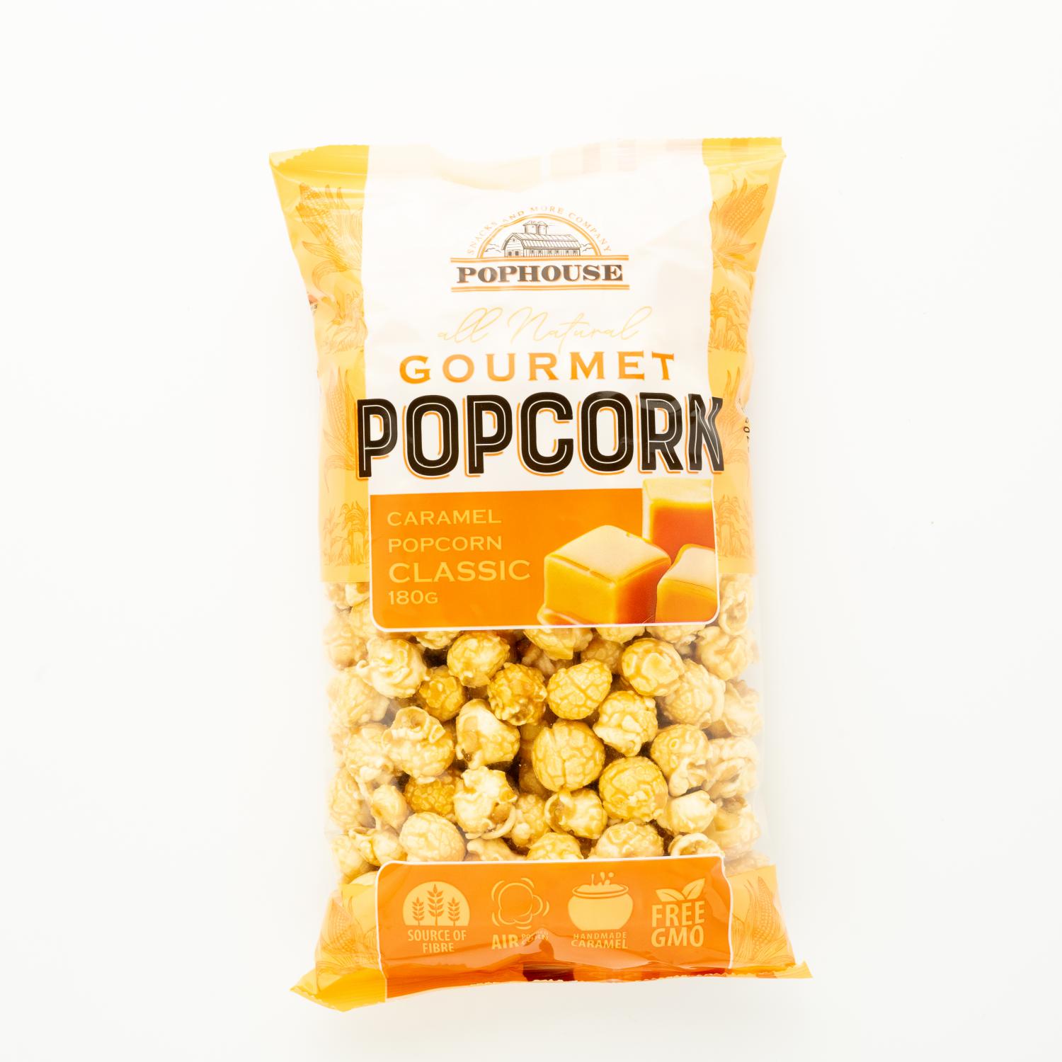 Popcornul premium crocant și natural "Pophouse", cu gust de caramelă, se topește în gură și lasă un postgust dulce și plăcut.