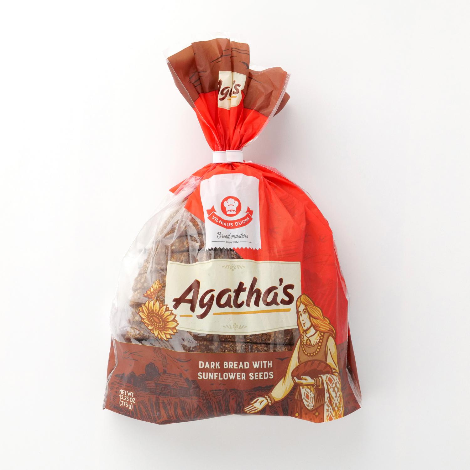 Aceeași pâine neagră de secară „Agata”, dar îmbogățită cu semințe de floarea soarelui. Moale și mereu proaspătă, „Agata” este o alegere perfectă pentru iubitorii de gustul clasic al pâinii. Această pâine va îmbogăți gustul mâncărurilor tale preferate. Încercați această pâine cu brânzeturi lituaniene, produse din carne și diverse legume.