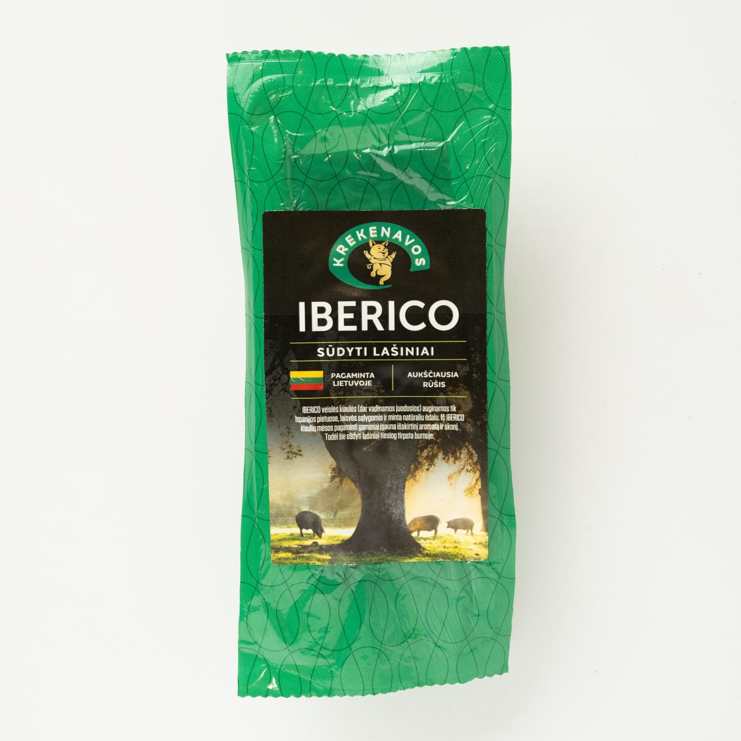 Baconul „Iberico Krekenavos” este produs din carne de porc iberic și se distinge printr-un gust de carne neobișnuit de pur. Porcii iberici sunt o rasă veche de elită de porci mediteraneeni, crescuți exclusiv în pădurile de stejar din Peninsula Iberică. Aceasă carne are o structură specială. Datorită faptului că slănina din această rasă se acumulează nu numai sub piele, ci și între fibrele musculare, puteți observa dungi albe caracteristice ale acesteia, care reprezintă secretul suculenței și gustului cărnii!