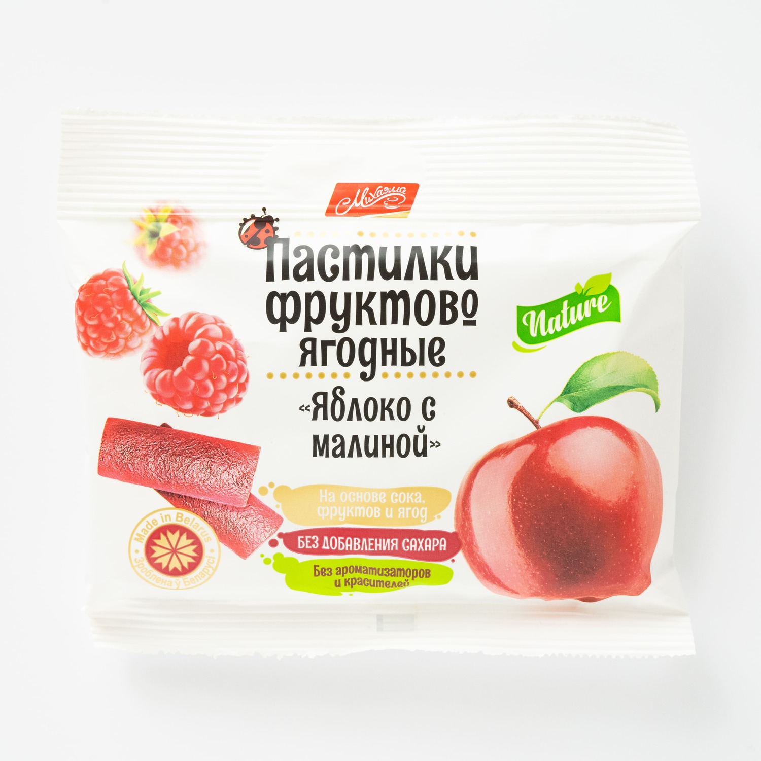 Este creată cu grijă și atenție, folosind cele mai înalte calități de ingrediente naturale. Gustul și calitatea acestei delicii reflectă măiestria și tradiția producției belaruse. Fiecare mușcătură din păstilă este ca un basm și o eleganță, dezvăluind magia aromelor de fructe și dulceața deosebită a mărului și zmeurei."