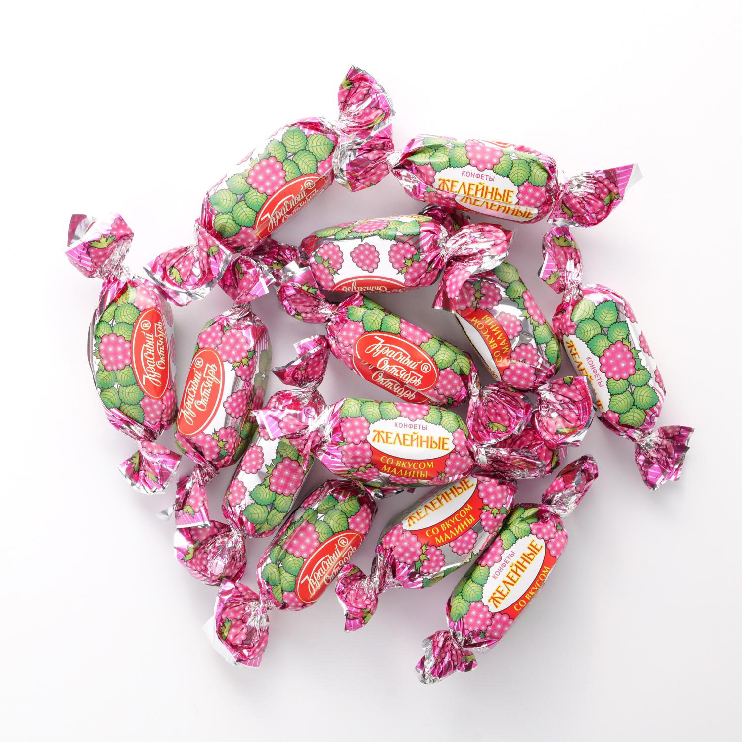 Bomboanele de ciocolată „Jelly” cu un gust de zmeură de la marca „Krasni Oktabr” reprezintă cel mai delicat jeleu în glazură de ciocolată. Consistența blândă a jeleului, combinată cu un strat subțire de ciocolată, se topește plăcut în gură, dezvăluind completitudinea aromei de zmeură. Ciocolatele „Jelly” sunt foarte gustoase și perfecte pentru a fi servite la o masă de sărbătoare.