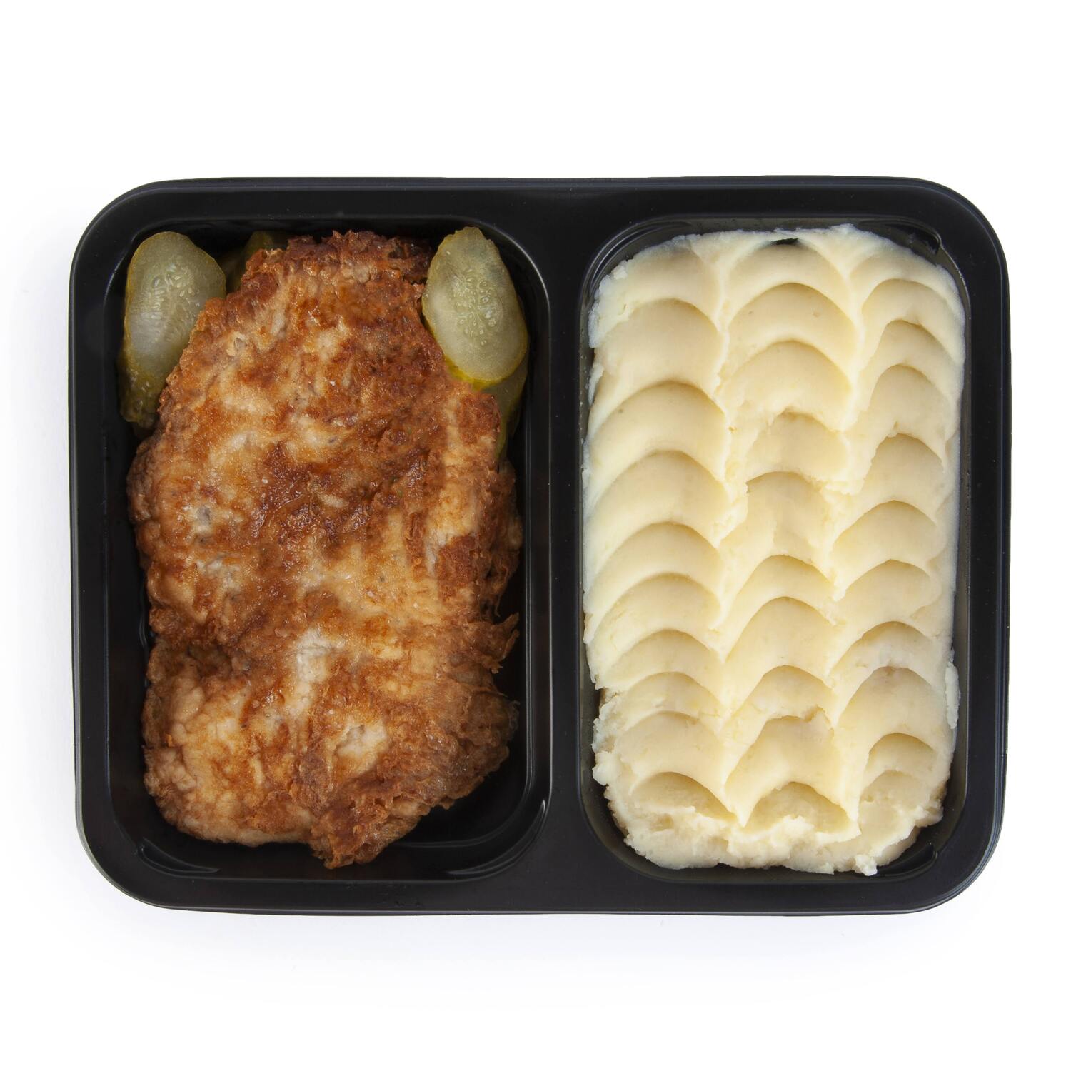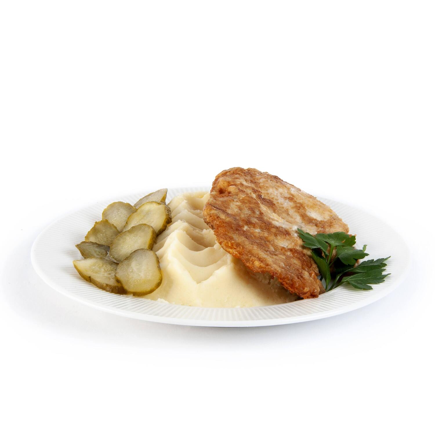Snitel de pui cu piure de cartofi si castraveti murati 430GR