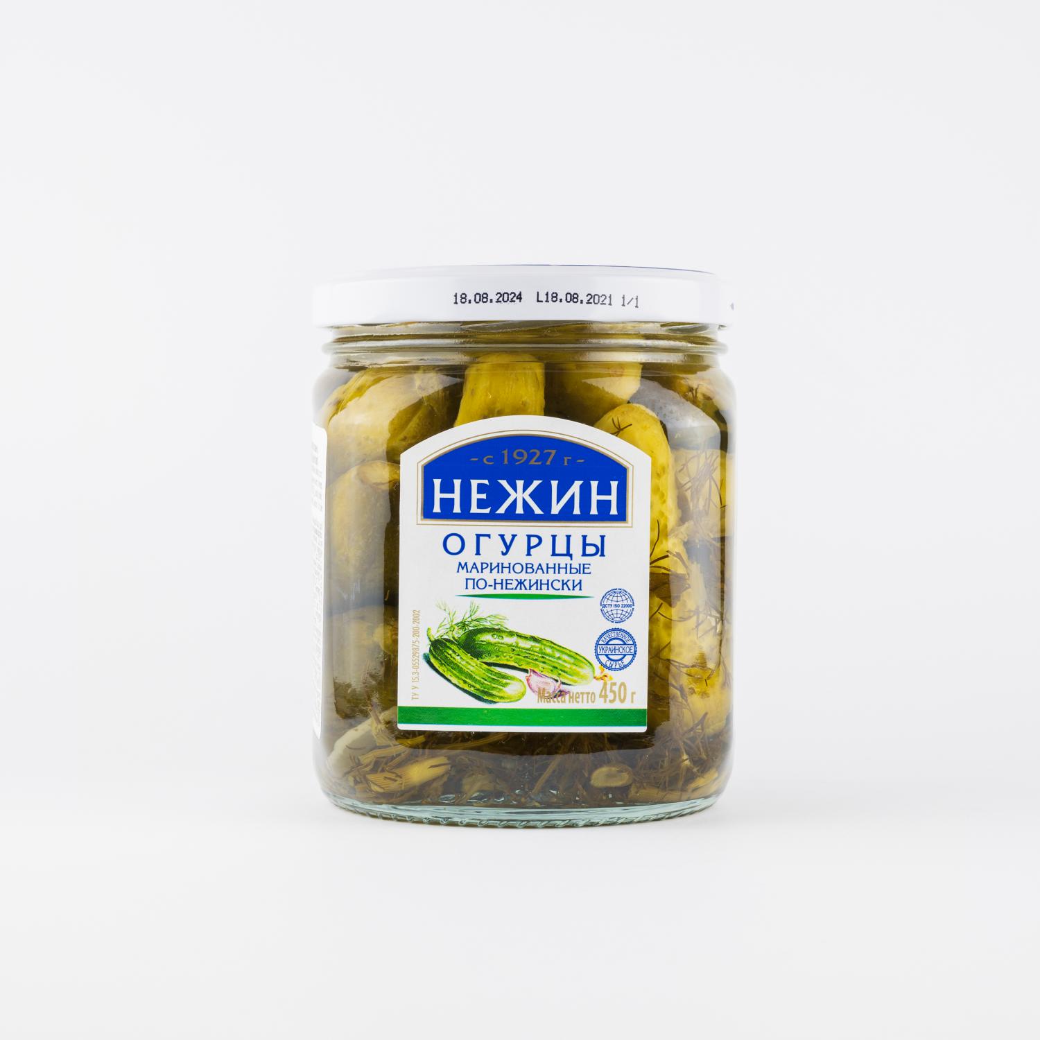 Castraveții marinați de la marca „Nezhin” sunt crocanți, ușor picanți, cu mărar, pătrunjel și hrean, într-un volum de 450 g.